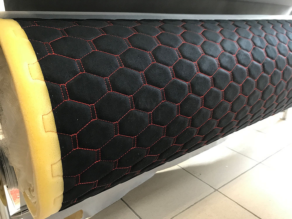Алькантара стеганая Орегон Соты Черная с красной строчкой